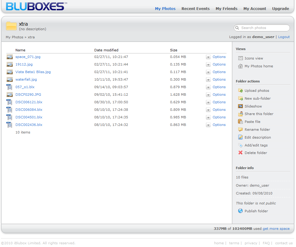 Provides many powerful features like upload multiple photos, slideshow, send to a friend, share for other users, monitoring the activity, etc.